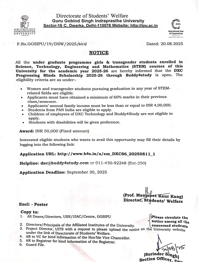 • DXC Progressing Minds Scholarship Last Date: September 30, 2025