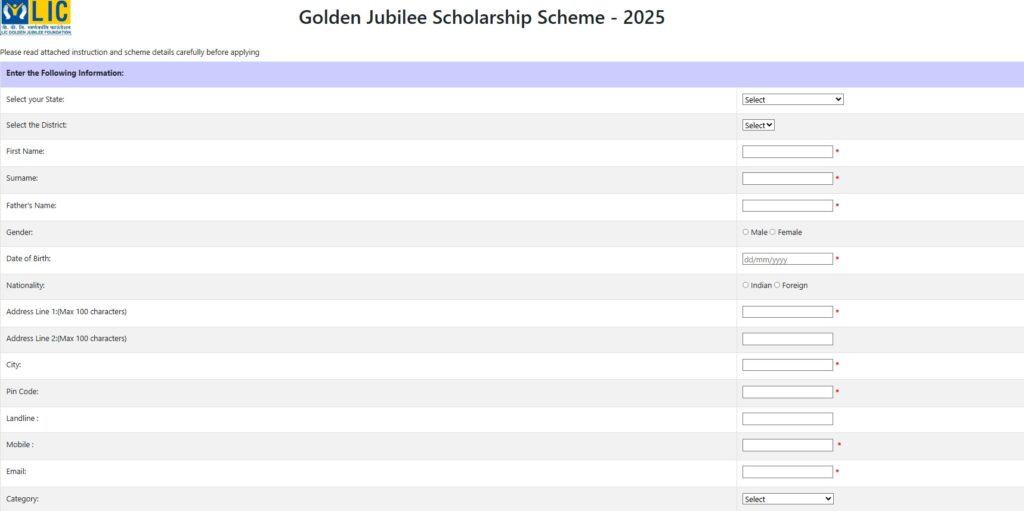 - Go to LIC Golden Jubilee Scholarship 2025 Online.