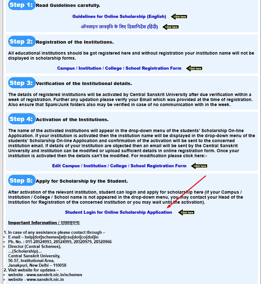 Step 2: Ensure your educational institution is registered with Central Sanskrit University. All educational institutions should be got registered here and without registration your institution name will not be displayed in scholarship forms.